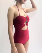 「預購」Amelia – Red Wine golden circled onepiece