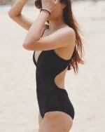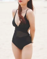 [預購]Veronica – Sheer Plunging V Shape – One Piece – Black